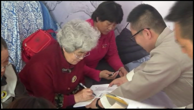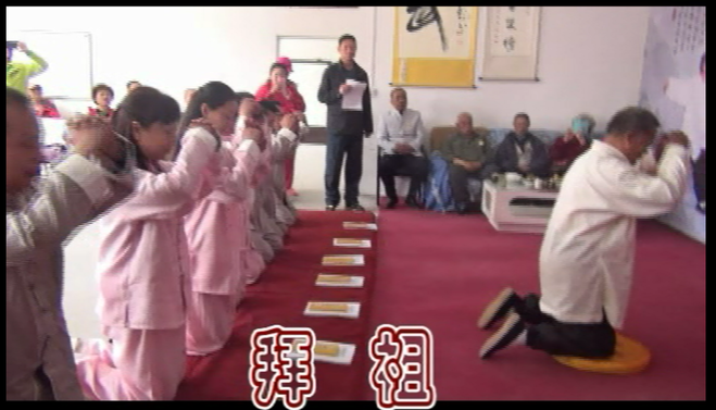 众弟子手捧《收徒证书》请武林前辈在收徒证明人处签字证明。