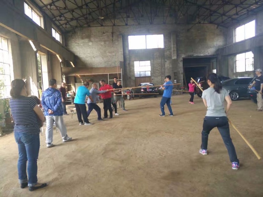 南来的北往的太极拳爱好者,不畏夏季的炎热一起聚集在北京吴荫农太极拳社练功场,互相学习!互相切磋!